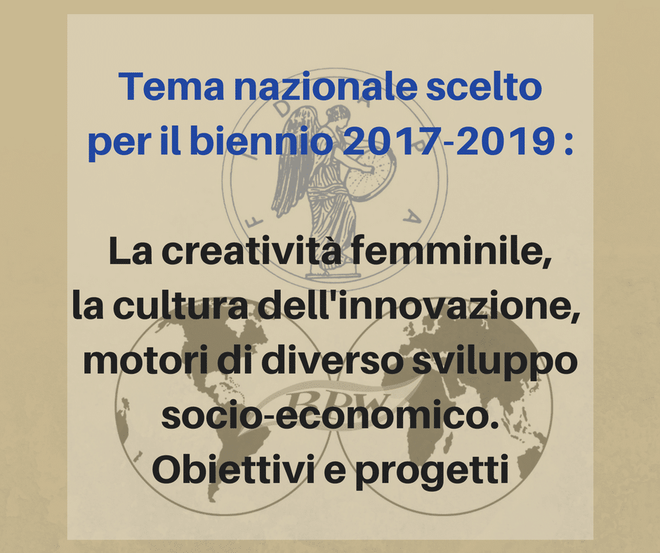 Il Tema nazionale scelto dalle Sezioni Fidapa per il prossimo biennio risponde alla necessità di compenetrare più a fondo alcuni temi già in parte anticipati nel biennio che si avvia a conclusione, ma con un taglio diverso, meno rivolto alle singole eccellenze femminili, per riflettere invece sulle grandi trasformazioni storiche, ma anche ambientali che le donne stanno vivendo e a cui tentano di dare un contributo di cultura e capacità tanto straordinario se lo si considera nella realtà italiana ancora ostile alla promozione e al successo femminili.