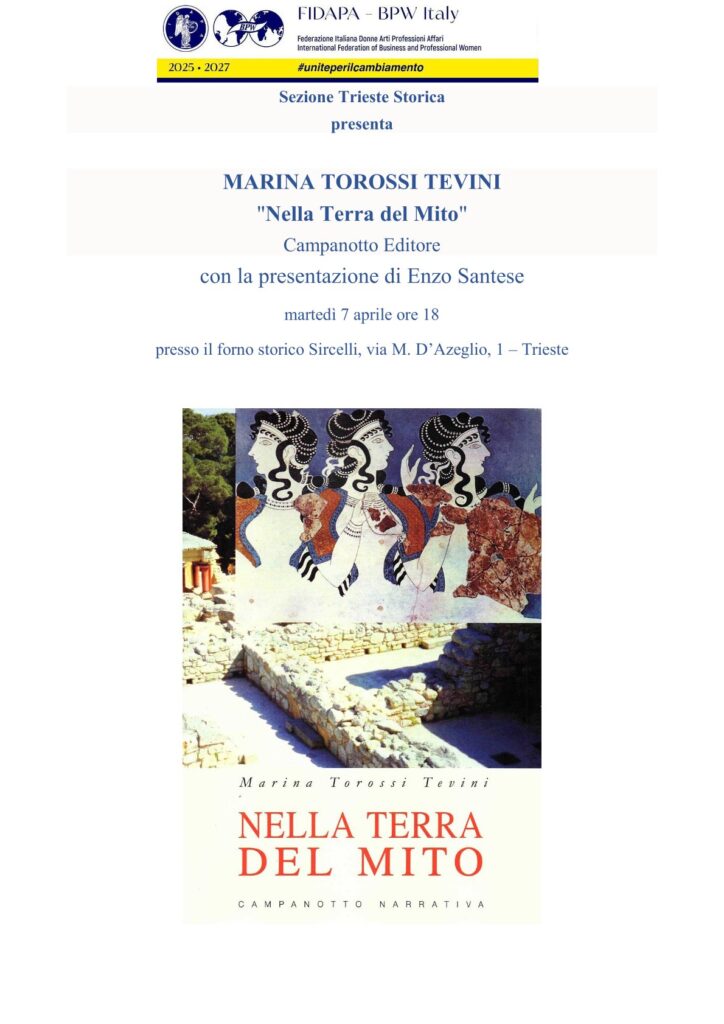 L’evento รจ aperto a socie, amici e cittadini interessati, e rientra nelle attivitร culturali promosse dalla sezione Trieste Storica della FIDAPA BPW Italy, che periodicamente organizza presentazioni, incontri e momenti di approfondimento letterario e artistico presso il Forno Storico Sircelli.