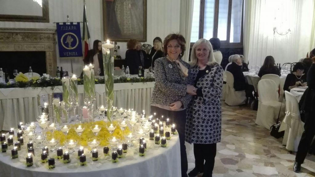 Sabato 10 Febbraio 2018, al Circolo Unificato dell’Esercito di Castelvecchio, si è svolta la Cerimonia delle Candele organizzata dal Distretto Nord-Est con la collaborazione delle Sezioni Verona Centro e Verona Est. Hanno partecipato la Presidente Nazionale Caterina Mazzella, la Presidente di Sezione Anna Giovannoni, la Presidente Distrettuale Marta Lanzarotti e tutto il Comitato di presidenza distrettuale. La Cerimonia delle Candele segna un’importante tradizione all’interno della Federazione Fidapa, che ha origine nell’inverno del 1942: ogni candela accesa rappresentava una nazione nel mondo, che veniva poi spenta quando questa entrava in guerra. Le rimanenti, accese, rappresentavano la speranza e la Pace in sostegno alle altre nazioni. Oggi, la Cerimonia rappresenta un momento di incontro per tutte le socie del Distretto, riunite come simbolo di unione, solidarietà e comunanza, i punti cardine che stanno alla base dell’ “essere Fidapa” come socia all’interno dell’Associazione. Come affermato dalla Presidente Nazionale Caterina Mazzella, nel suo discorso di apertura, «Accendendo quelle candele noi siamo vicine negli intenti a tutte le donne nel mondo, anche per colore che ancora oggi non hanno voce, ce ne sono tante».