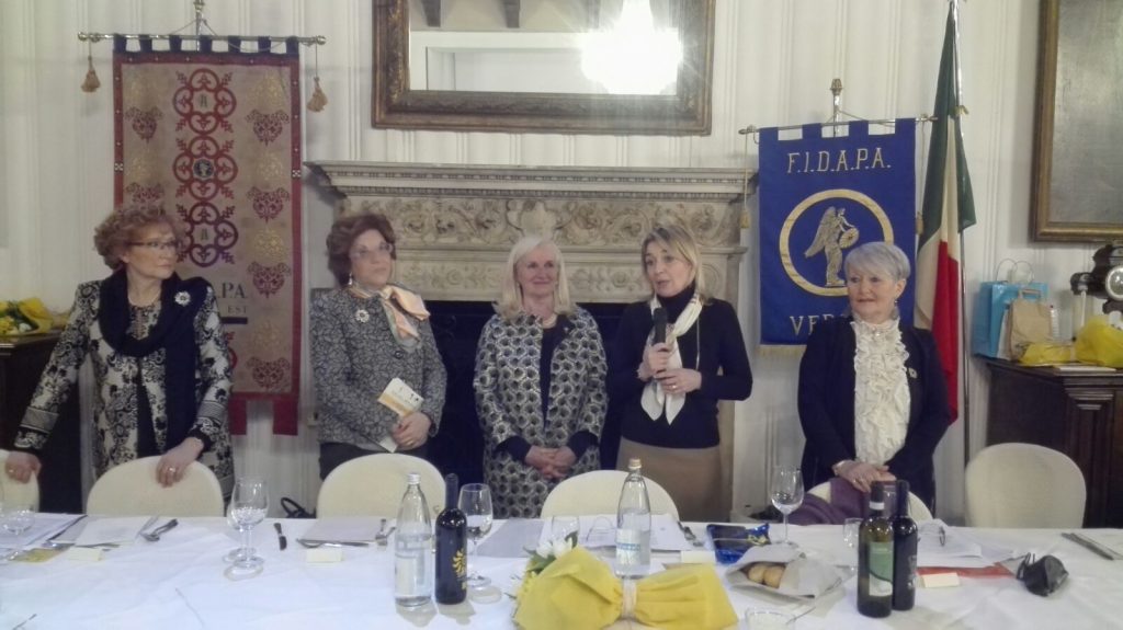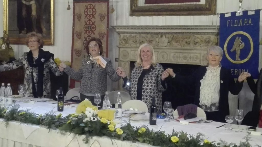 Numerose le ospiti, tra cui l’Assessore alla Cultura e Pari Opportunità del Comune di Verona, Avv. Francesca Briani. La socia della Sezione di Verona Centro, Lina Chiaffoni, che ha introdotto Telethon in Fidapa e in molte scuole già in anni lontani, saluta tutte le presenti dichiarandosi compiaciuta nel vedere tanta comunanza di sentimenti e di amicizia.