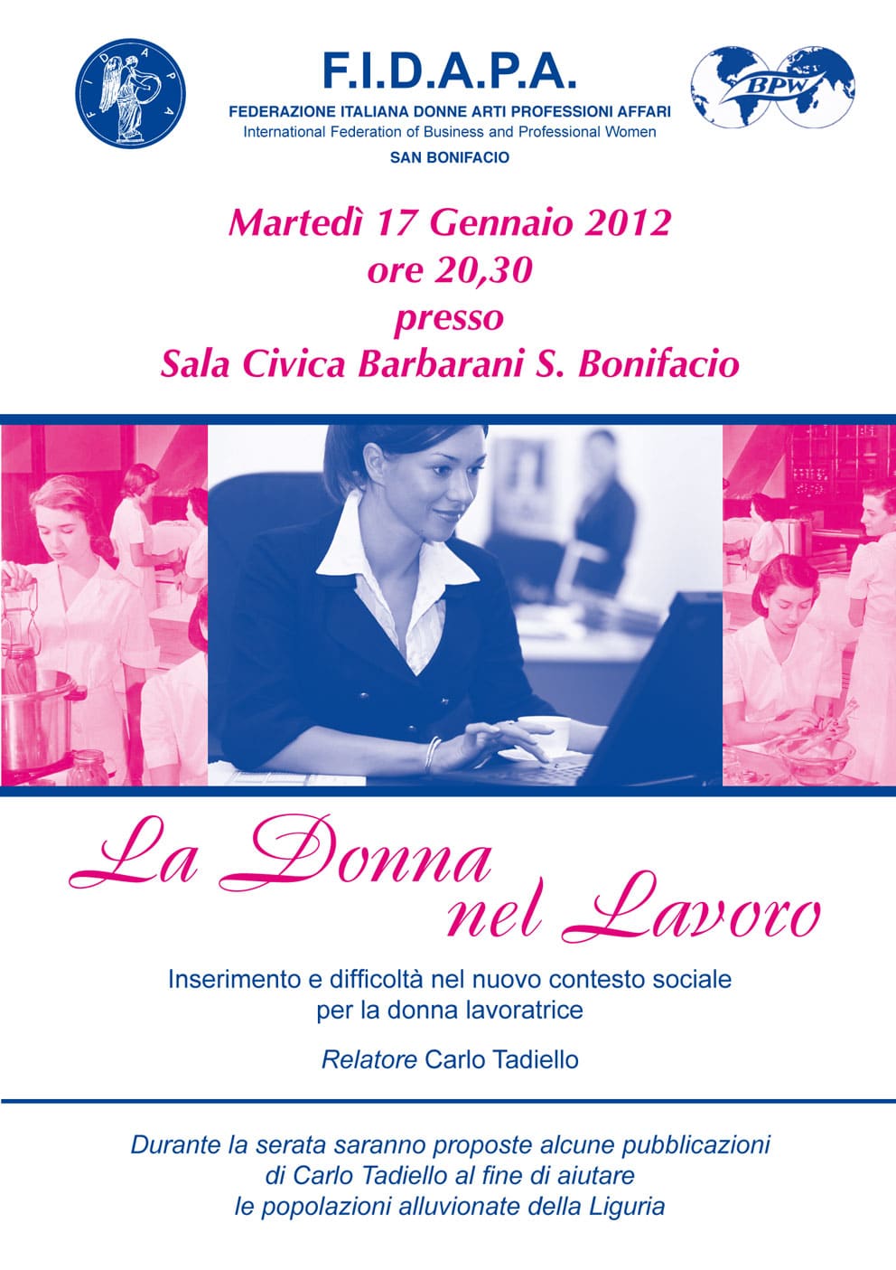 Si terrà il 17 gennaio 2012 alle 20.30 in Sala Barbarani di San Bonifacio, un interessante convegno sulla donna nel lavoro e le difficoltà nel nuovo contesto sociale.
