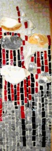Ho sempre raccolto e conservato oggetti fatti di materiali diversi anche se rotti , perché ognuno di essi aveva un suo vissuto e trasmetteva delle informazioni sul passato e delle emozioni più o meno forti. Ad essi si sono aggiunti sassi, vetri, laterizi lavorati dal mare, cercati o semplicemente trovati durante i viaggi sulle mille coste di questa nostra Italia nelle vacanze estive con le mie figlie e all’estero in terre lontanissime in cui non avrei mai pensato di mettere piede per seguire e conoscere i luoghi dove per studio, per lavoro e per scelta di vita loro decidevano di trasferirsi. Invece di catalogare ordinatamente e trascrivere verbalmente quello che avevo intuito e provato ho preferito creare altro: un manufatto più complesso misto a mosaico che potesse essere letto autonomamente secondo le esperienze, il vissuto e l’ interpretazione di chi ne fruisse di volta in volta.