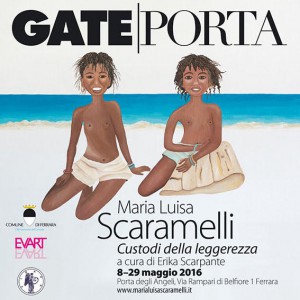 Dall’8 al 29 maggio 2016 la Porta degli Angeli di Ferrara ospita la mostra personale Custodi della leggerezza, curata da Erika Scarpante, presentata da Michele Govoni e promossa da Evart, organizzazione no profit per l’arte e la cultura, con il Patrocinio del Comune di Ferrara e di FIDAPA (Ferrara). Maria Luisa Scaramelli esporrà una selezione di opere dedicate alle donne Himba e del Madagascar.