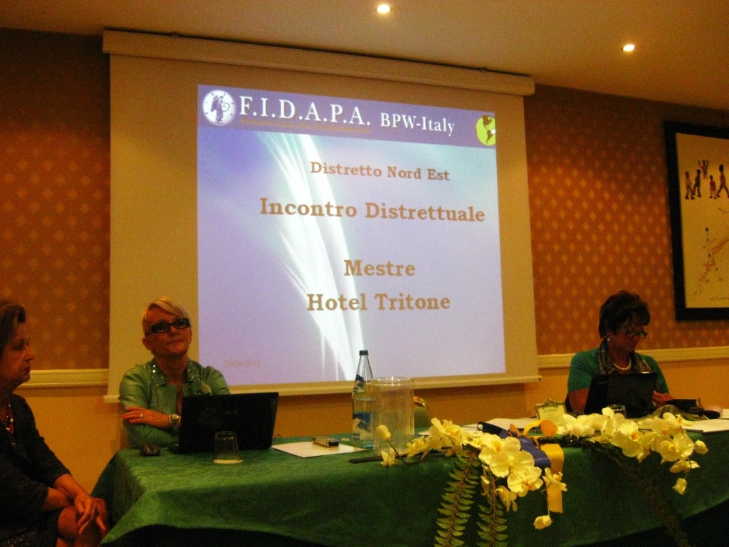 Sabato 27 giugno 2013 , presso l’ Hotel Tritone in Venezia – Mestre, si è tenuto l’ultimo incontro distrettuale Nord Est FIDAPA BPWITALY . Erano presenti le seguenti sezioni: Cesena, Forlì, Legnago, Lonigo, San Bonifacio, Padova, Trento, Trieste storica, Pordenone, Treviso, San Donà di Piave, Verona Centro, Verona Est, Rovigo, Ferrara, Venezia, Patavium Euganea, Porto Viro.
