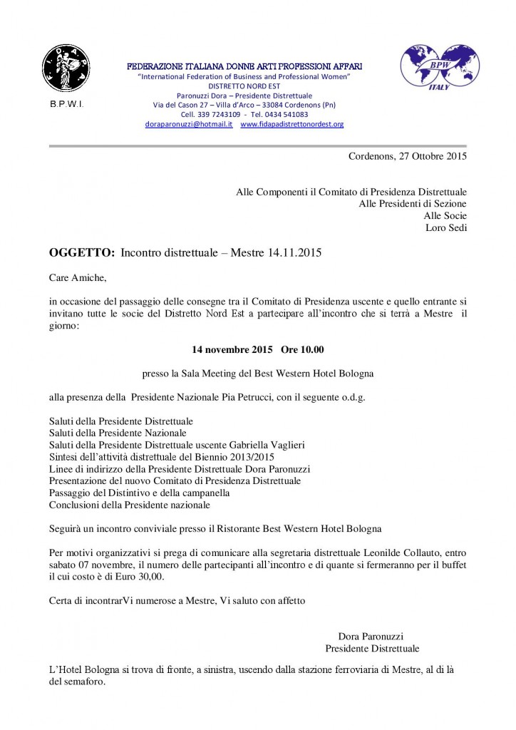 Incontro distrettuale Mestre 14 novembre 2015