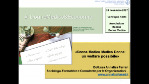 - Annalisa Ferrari, sociologa, formatrice e consulente per le organizzazioni, ha relazionato sui temi della conciliazione e del welfare con l’intervento “Donne Medico – Medico Donne: un welfare possibile”