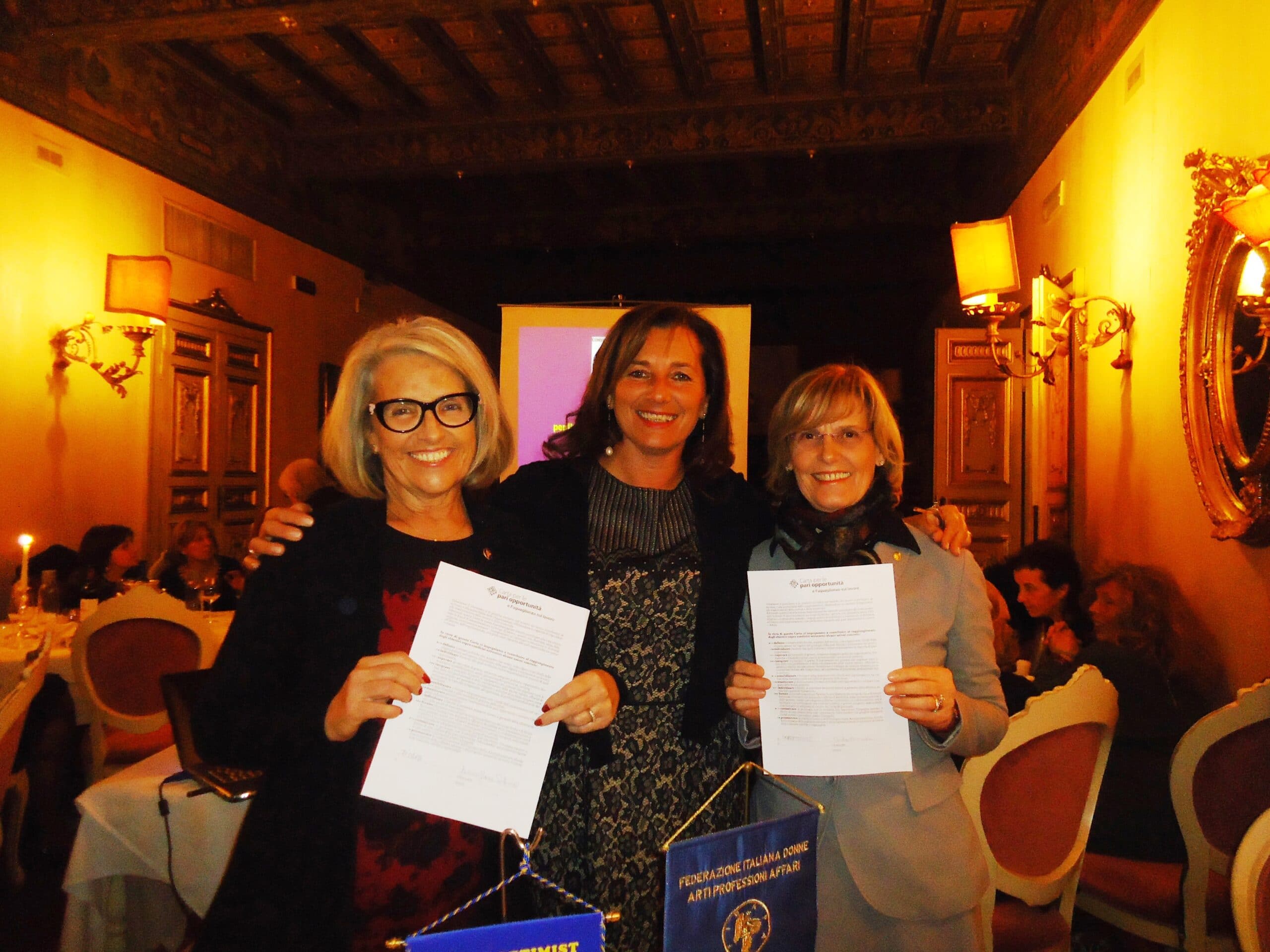 presidenti-consLe Sezioni ferraresi di F.I.D.A.P.A BPW Italy e SOROPTIMIST, hanno aderito all’iniziativa promossa dalla Consigliera di Parità della Provincia di Ferrara, Dott.ssa Donatella Orioli, per la sottoscrizione ed il sostegno della Carta delle pari opportunità e l’uguaglianza sul lavoro.