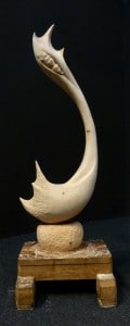 Questa la motivazione della commissione giudicante: “Dalle forme plastiche della statua esce, come forza vitale, il senso interiore della vita e della morte, che trovano armoniosa fusione nelle figure della madre e del bimbo colti in un unico disperato abbraccio. La danza immobile tra fine ed inizio, tra naturale ed innaturale, è rappresentata nell’onda dinamica che verticalizza un grido disperato, dolcissimo monito di rinascita, che impasta la forza vitale con l’energia scaturita dal legno”.
