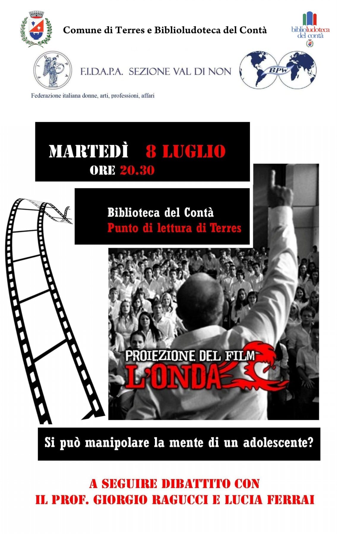 L’incontro vedrà la proiezione de L’Onda (Dennis Gansel, 2009) a cui seguirà un dibattito con Giorgio Ragucci Brugger e Lucia Ferrai, appassionati di cinema e studiosi di filosofia politica.